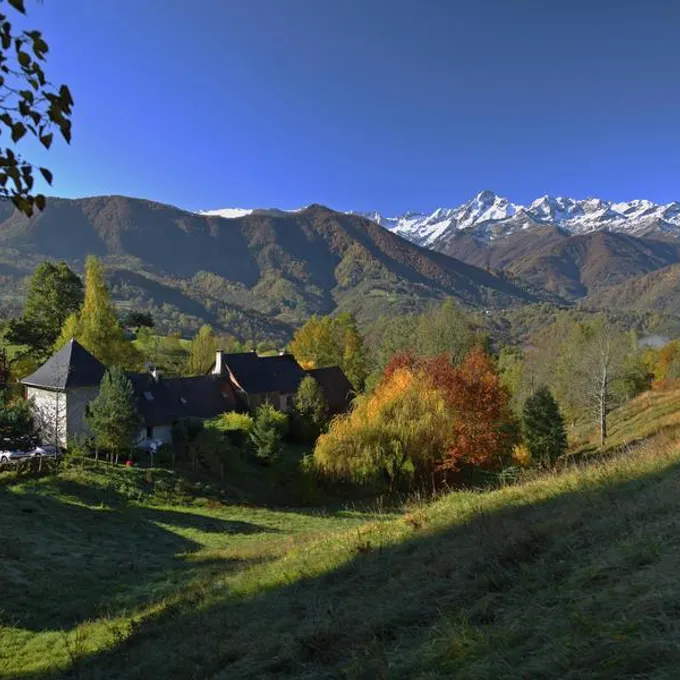 Mountain house located at 800 m altitude in the Ariège Natural Park in a hamlet of 3 houses overlooking the emblematic Mont Valier 2838 m. A place of calm and serenity, surrounded by meadows and woods. Large flower garden