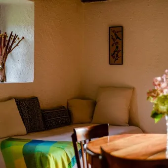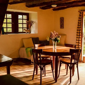 Unusual, solidarity-based, eco-responsible mountain gîte / barn for rent in Cominac, in the heart of the Parc Naturel Régional des Pyrénées Ariégeoises, 1h45 from Toulouse and 25 kms from the Guzet ski resort. Rediscover a simple life close to the essentials!