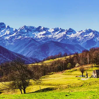 A listed architectural site, an exceptional panorama of the high peaks Discover the pastoral plateau of Cominac. The Ecureuils hike offers a superb view of the typical hamlet of Cominac and the magnificent Pyrenees mountain range.